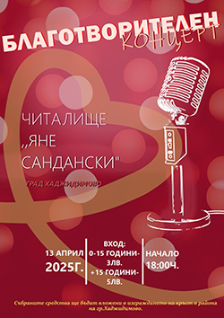 Искаме да изкажем искрената си благодарност към студентите от четвърти курс "Актьорско майсторство" при Югозападен университет "Неофит Рилски", под художественото ръководство на доц. д-р Милена Анева и д-р Цвятко Стоилов, които на 9 декември 2024 г. от 18:00 ч. изнесоха изключително вдъхновяваща благотворителна постановка в читалище "Яне Сандански" в гр. Хаджидимово.